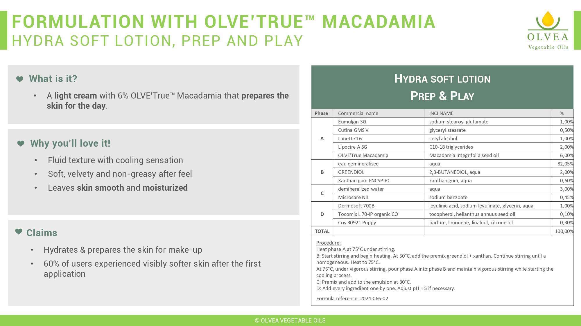 OLVEA - OLVE'True™ Macadamia Oil - Hydra Soft Lotion, Prep and Play
